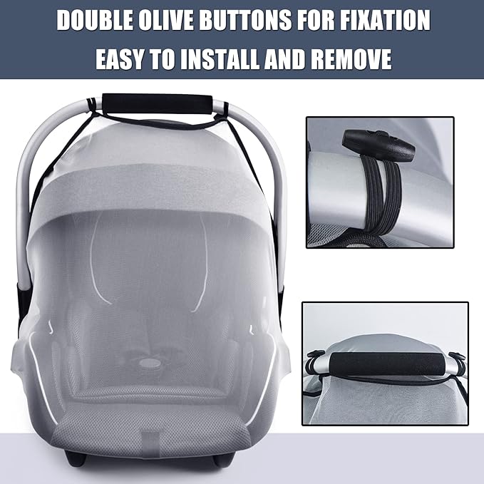 • EASY AND QUICK TO INSTALL: Unique design in the market-double olive designs for fixation for 1 time intalling for lating use. The baby insect netting universally fits most baby car seats and can be attached very quickly thanks to the elastic band.