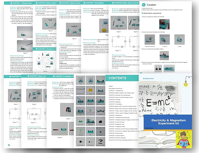 • 📢The Most Complete Bundle for Electricity & Magnetism Learning!Find more unique items in this kit,such as Light control led, Magnetic switch, Joule's first law experiment module... ✈️Give your kids an interesting, hands-on introduction to Electricity and Magnetism with this physics gifts. This set offers more than 50 do-it-yourself experiments that will give your child an entertaining, concrete education on how electronics and magnetism work.