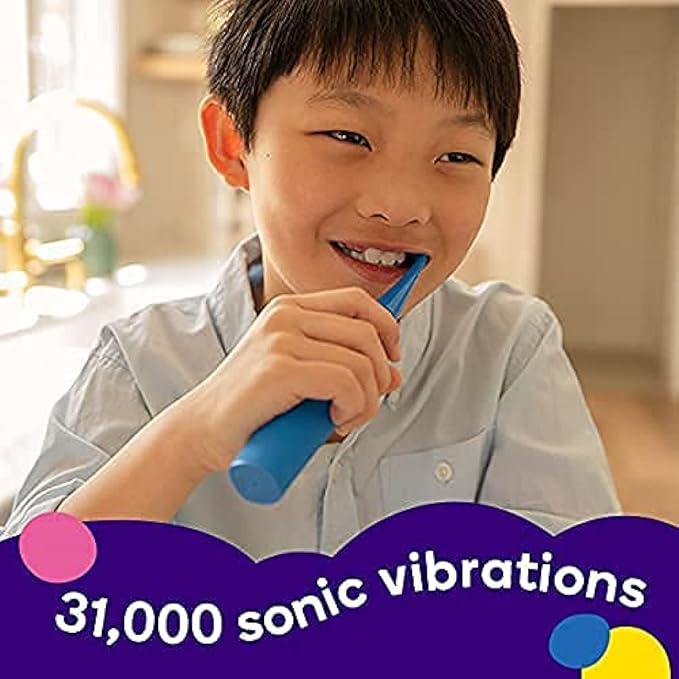 • ๐—›๐—˜๐—Ÿ๐—ฃ๐—ฆ ๐—ž๐—œ๐——๐—ฆ ๐—•๐—ฅ๐—จ๐—ฆ๐—› ๐—•๐—˜๐—ง๐—ง๐—˜๐—ฅ: 96% of parents said BURSTkids was easy for their child to use.** The small handle size and wider grip make it easier for kids to reach all areas. The 2-minute timer pauses every 30 seconds as a reminder to switch areas.