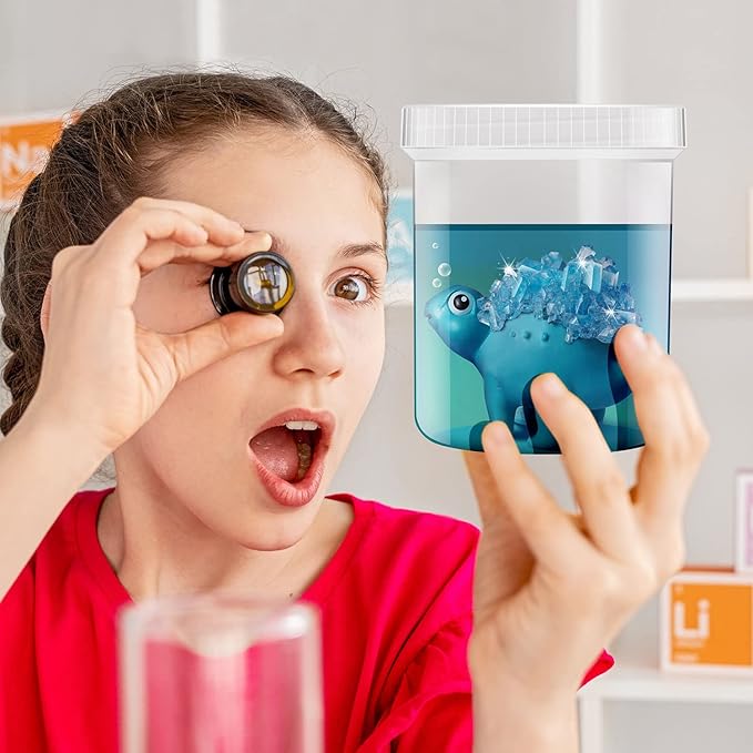 • Grow Orange, Blue And Purple Dinosaur Crystals: Create beautiful crystals spines for 3 dinosaurs and bring them into life! Let your child feel like a real chemist watching the crystal grow in 72h. Chemistry has never been so fun and colorful!