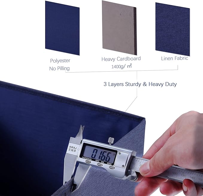 • DURABLE DOUBLE-SIDED HANDLES --- These storage boxes feature reinforced double-sided handles with firm stitching to let you move these containers effortlessly. Wherever you place them, in the closet, under the bed, or on the shelf, there is no worry to move them with containing items inside.