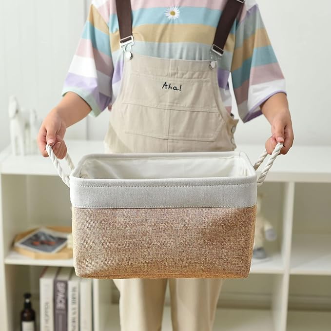 • High quality: The outer material of the storage box is made of imitation linen, with thickened EVA in the middle, refusing to sag, high quality can keep the storage box firm and stylish. The lining is thin cotton, easy to clean, just wipe with a wet sponge or cloth. The handle material is made of cotton and linen handle, wide and not strangled hands.