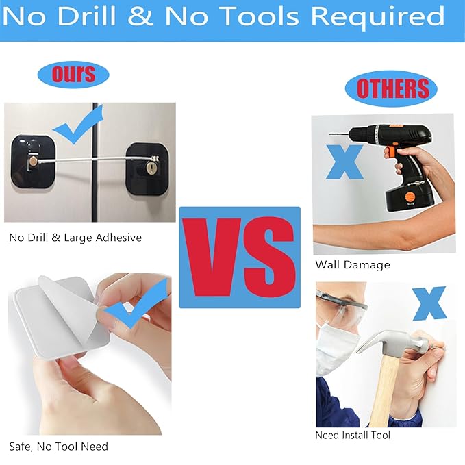 • MULTI-PURPOSE LOCK: Refrigerators door locks, Pantry door lock, Closet lock, Trash can lock, File cabinet lock, Cupboard locks, Medicine cabinet lock, Toilet seat lock, Oven child lock, Refrigerator lock, Fridge door lock, Freezer door lock, Cupboard locks, Liquor cabinet lock, Garbage can lock, Toilet lid lock, Cabinet with lock, Door monkey locks for kids, Kids door lock, Fridge child lock, Cabinet door locks, Baby proof drawer locks, Medicine cabinet lock