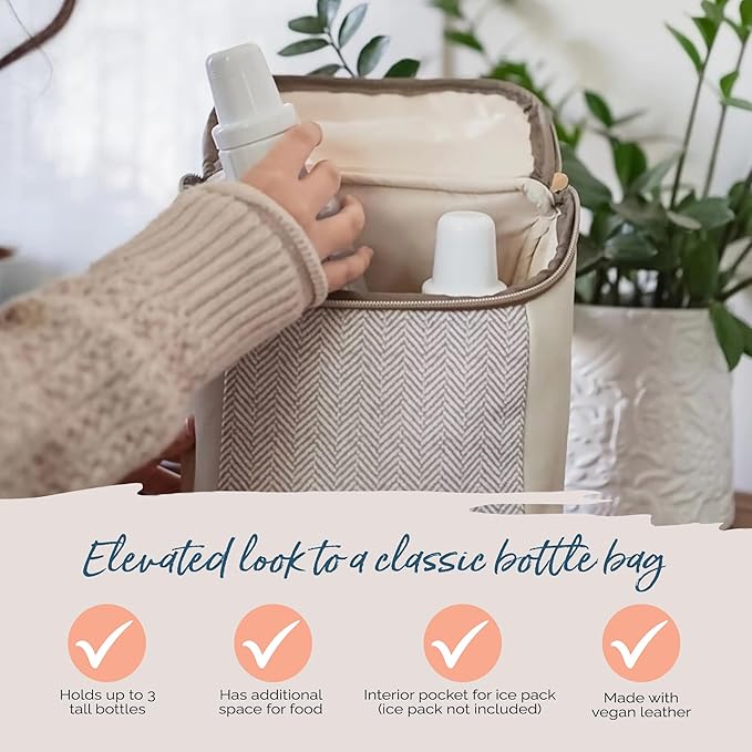 Itzy Ritzy Insulated Bottle Bag – Keeps Bottles Warm or Cool - Holds 3 Bottles & Features Interior Pocket for Ice Pack (Not Included), Vanilla Latte
