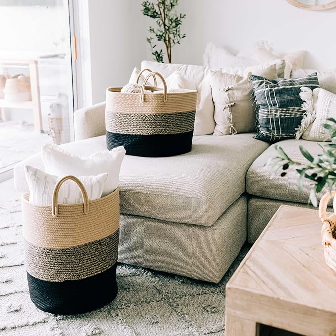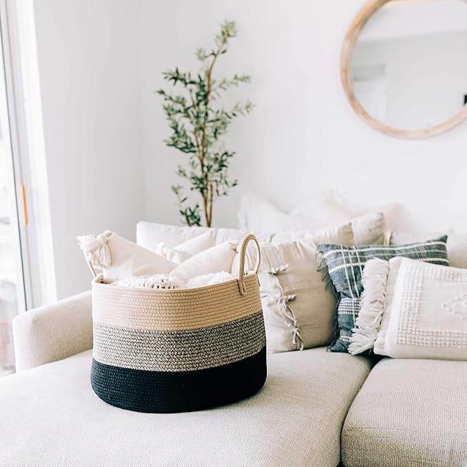 • Beautiful Addition to Your Boho Decor: Elevate your living room decor with this handwoven blanket basket. Neutral tones and minimalist design create a cozy, stylish vibe, perfect for farmhouse, Scandinavian, or boho decor aesthetics.