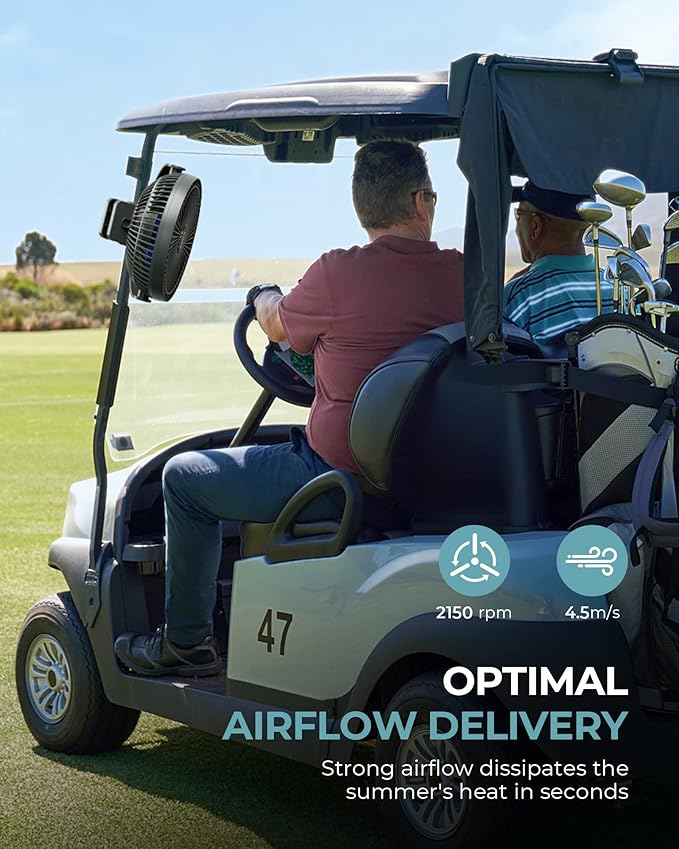 • Compact Size: This rechargeable fan is equipped with a robust clamp. You can easily place it at a corner of your desk, beside your treadmill, in your golf cart, besides your bed, or anywhere you like to have strong airflow. Its compact size doesn't take up much space.