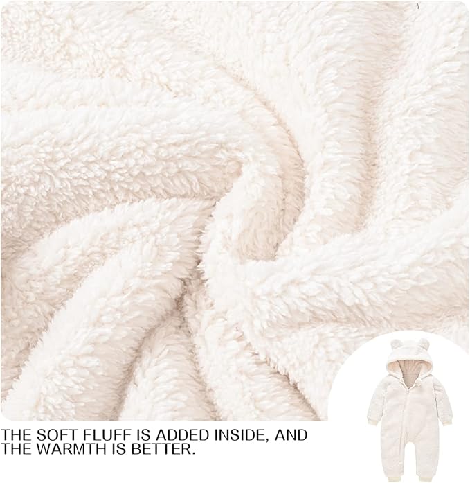 Baby Fleece Jumpsuits Infant Bear Ear Snowsuit Newborn Hooded Romper Warm Coat