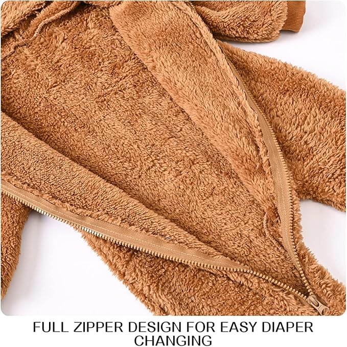 Baby Fleece Jumpsuits Infant Bear Ear Snowsuit Newborn Hooded Romper Warm Coat