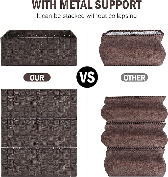• Set of 6 Baskets for Organizing : Multiple size baskets are suitable for different items, which are perfect in the drawer. It is strong and has enough section to put multiple options. Making your house or apartment feel a whole lot neater and cleaner. The baskets are packaged with paper box.