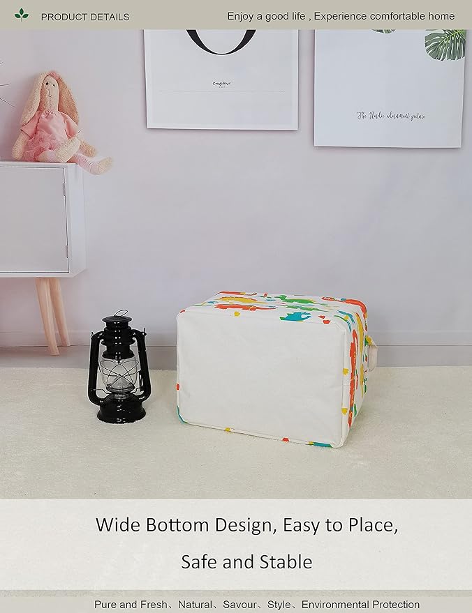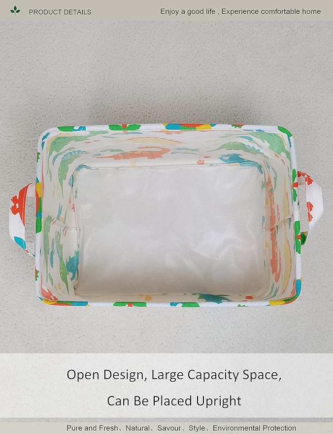 Rectangular Folding Laundry Basket, Canvas Basket,Nersury Hamper,Suitable for Children,Office,Bedroom,Clothes,Toys Storage(Dinosaur Paradise) (1)