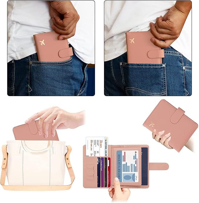 Melsbrinna Rfid Passport Holder for Travel women/Men, Cute Passport Wallet Rfid Blocking Card Slots, Rfid Passport Cover/CaseTravel Wallet, Passport Book Holder (1, Pink)