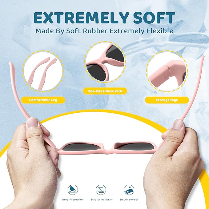 • SAFE AND COMFORTABL - RIVBOS sunglasses frame is made of soft silicone and unbreakable material, which is not easy to break, very durable, and also provides a comfortable wearing experience.