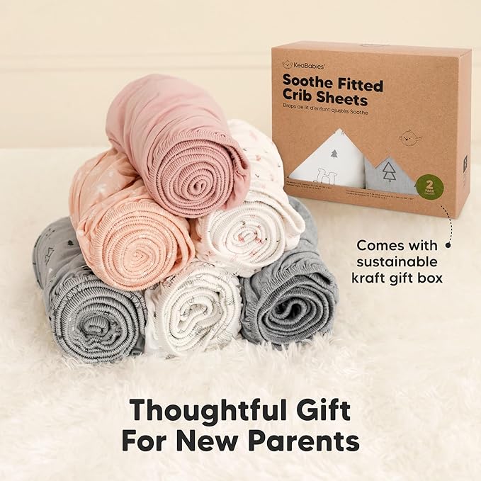 • 2-Pack Baby Crib Sheets - KeaBabies Soothe Fitted Crib Sheets for boys and girls; fit standard crib mattresses (52"x28" with height 3" to 8") perfectly, offering your baby a safe and restful sleep.
