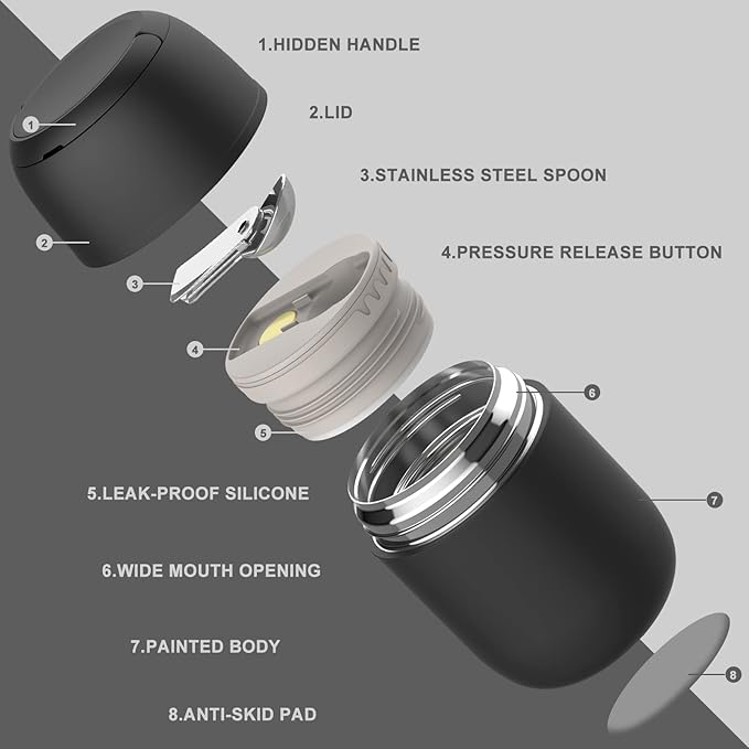 • Joopetalk thermo for hot food has an air pressure release button to help you easily open the bottle, and lunch thermo food jar is completely sealed, can prevent spilling accidents(100% Leak-Proof)