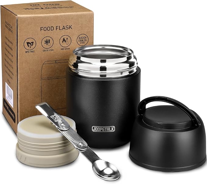• Joopetalk soup thermo comes with double-wall vacuum insulation technology, that can keep food hot for 12 hours & keep food cold for 24 hours.