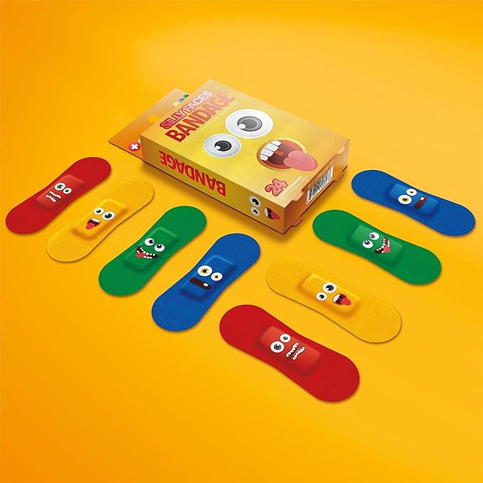 • SILLY FACES BANDAGES: This 24 piece pack of cute and hilarious looking silly face bandages is great for putting a smile on kids' faces while protecting wounds such as cuts, scrapes, and burns, and come in 4 assorted styles; sticky bandages are perfect for kids and adults alike, and also for school nurses and pediatric doctors