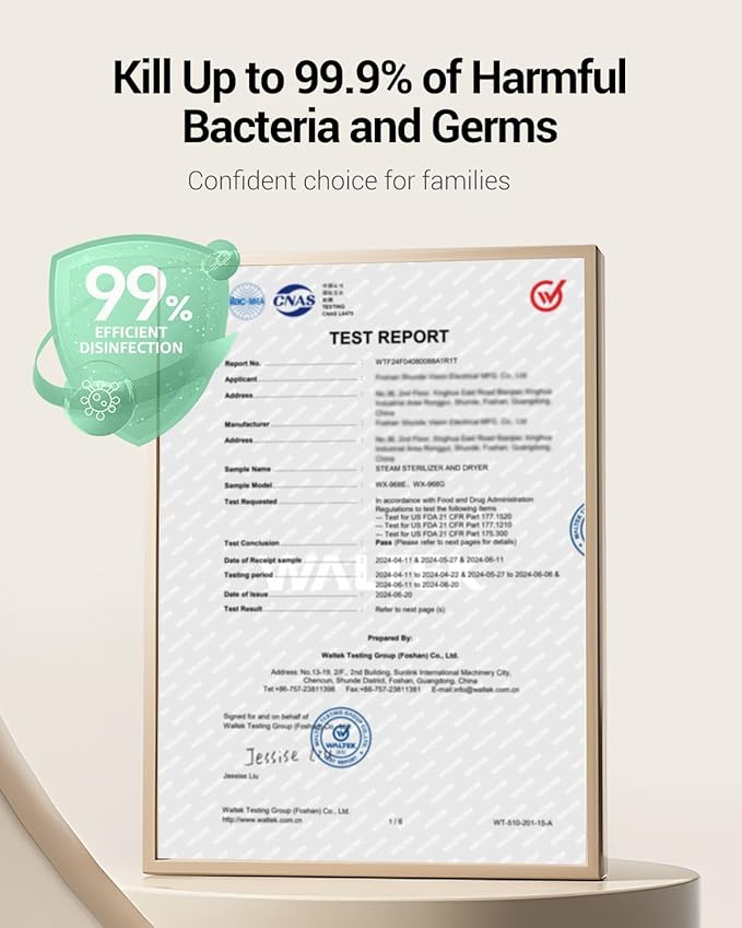 • 𝟳𝟮-𝙃𝙤𝙪𝙧 𝙂𝙚𝙧𝙢-𝙁𝙧𝙚𝙚 𝙎𝙩𝙤𝙧𝙖𝙜𝙚: Our innovative storage function maintains a germ-free environment for 3 full days (48 hours longer than standard 24-hour sterilizers), ensuring bottles stay sterile even through midnight feedings. Enjoy extended peace of mind and freedom with this industry-leading preservation.