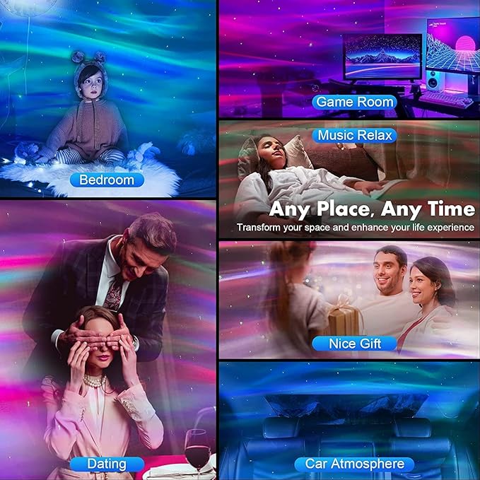 • 【Awesome Cool Gifts】Can't figure out what to buy for birthdays or Christmas?Just think of the aurora northern lights projector,northern lights lamp will be your notable gifts.Whether U are a child who loves northern lights projector,or an adult who just wants to relax,who doesn't want to have this dreamy aurora projector northern lights?Who doesn't want to sleep under the stars?The northern lights projector for bedroom is the best choice for holidays such as kids Xmas,Valentine's Day,birthday.