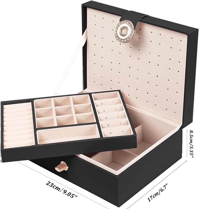 • Womens Earring Box for Girls 2 Layer Jewelry Box for Ladies Girls: Our women girls jewelry box for earrings stud rings and necklace organizer for girls made of premium PU leather.girls earring box organizer for women size: 9.05"*6.7"*3.35", weight:1.76 lbs. Portable stud earrings jewelry organizer girls jewelry holder organizer stud earrings.