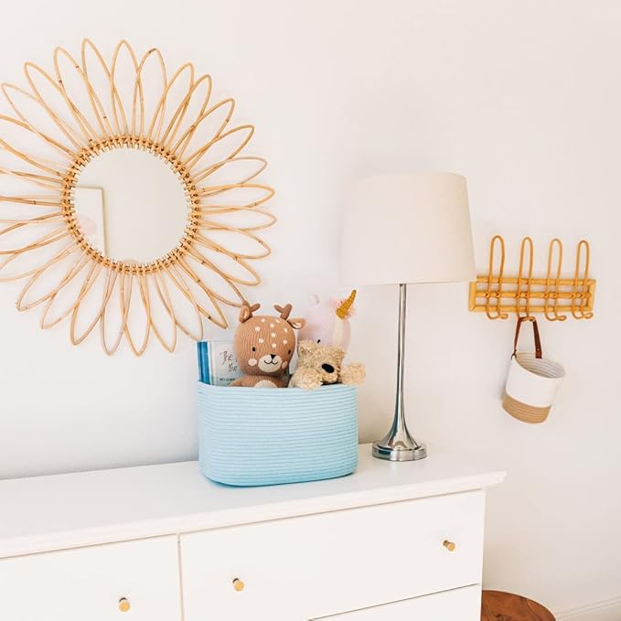 • Premium Cotton Rope Weave – These beautiful rainbow toy baskets are woven with high-quality, all-natural cotton to give them the right balance of softness and durability. This makes them great for bedrooms, nurseries, and laundry rooms as rainbow room decor.