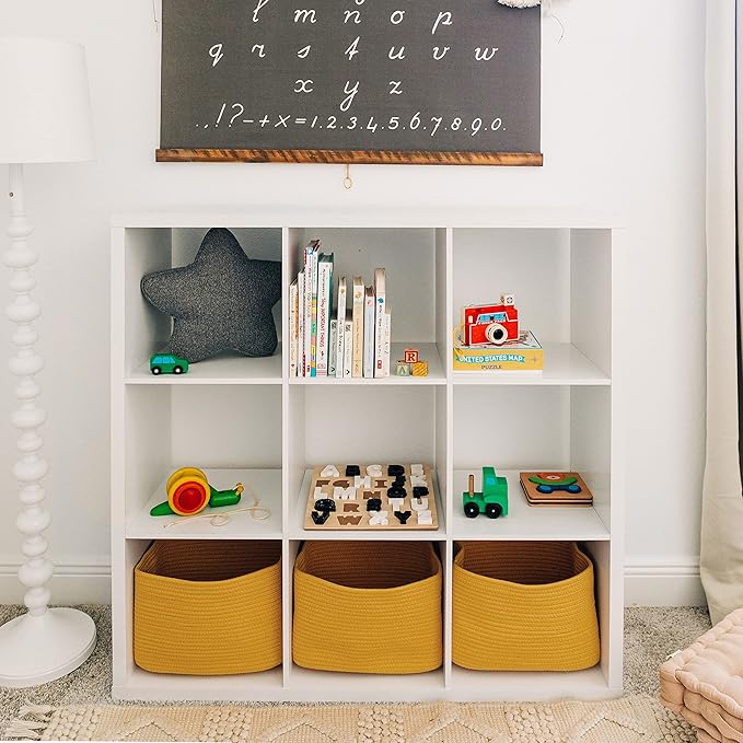 • Discrete, Built-In Carry Handles – These fabric rope baskets for storage also feature slim hand holds built right into the sides of each basket for a seamless look that’s also functional. Perfect for picking up toys or carrying items around the house.