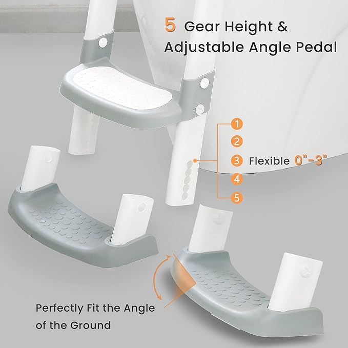 • 【JASSONE POTTY TRAINING SEAT】 - You can easily raise or lower the children's toilet ladder by 0-3 inches, with a footrest that can move back and forth, our product will perfectly fit to toilets of any height. (Package includes ducks)