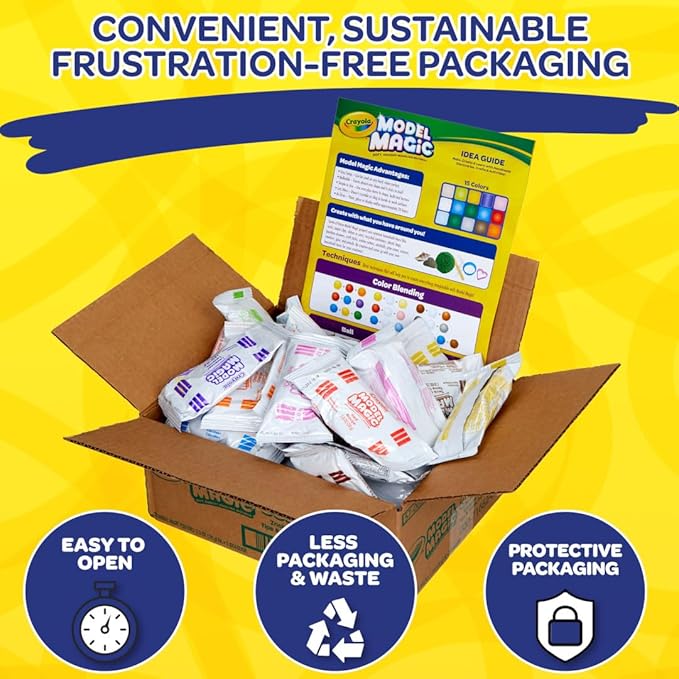 • Included Components : (30) 1oz pouches of Model Magic in 15 different colors (2 of each color included) and full color updated idea guide (30) 1oz pouches of Model Magic in 15 different colors (2 of each color included) and full color updated idea guide