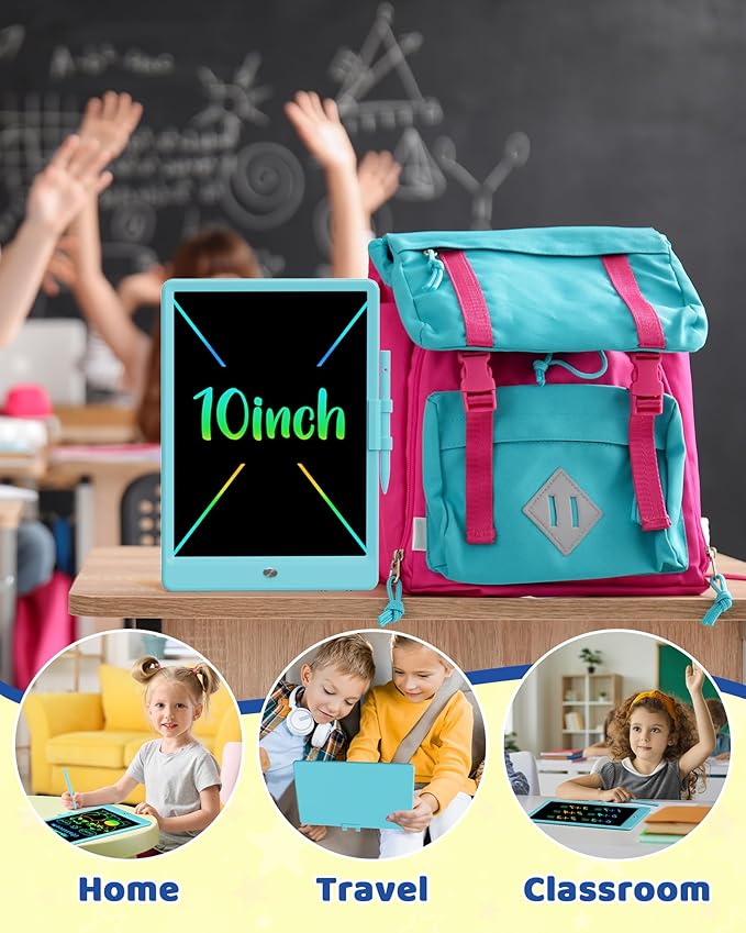 • ✨EYES PROTECTION LCD WRITING TABLET: This 10 inches drawing tablet adopts 2024 latest LCD pressure-sensitive technology, easy for viewing and graffiti, no radiation, no glare, won't hurt children's eyes like other electronic products. No discomfort even after prolonged use. And our doodle board is made of high quality ABS material, strong and fall-resistant, safe and odorless, very suitable for toddler children to use. Wonderful toys for 3 4 5 6 7 year old girls boys kids