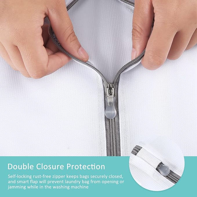 • Upgraded anti-rust zipper with auto lock feature and side small zipper cover will keep the bag closed when washing and drying. You'll have a new quiet and a snag-free laundry experience. Remember to tuck the zipper under the cover when doing laundry