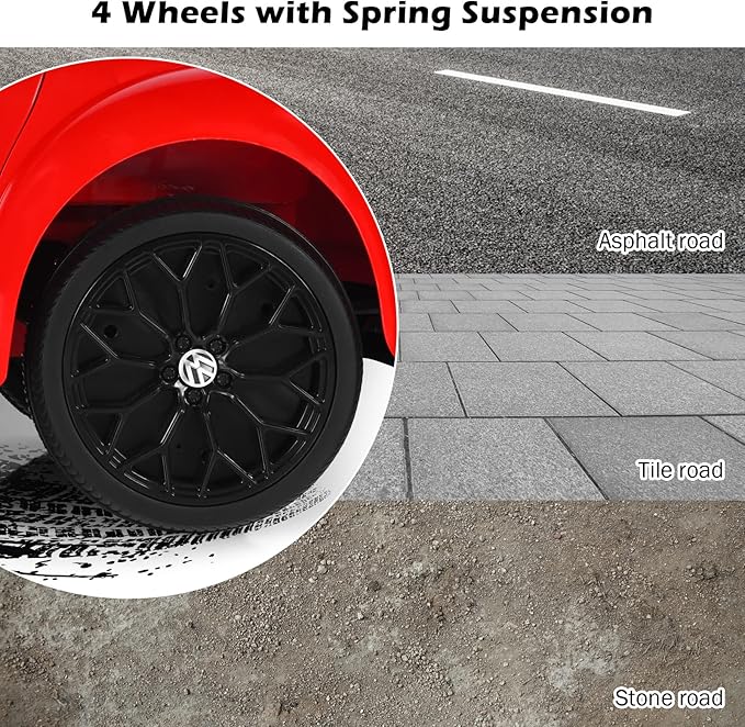 Costzon Ride on Car, 12V Licensed Volkswagen Beetle Battery Powered Vehicle w/Remote Control, Spring Suspension, Lights, USB, Horn, Music, 4 Wheeler for Boy Girl Gift, Electric Car for Kids (Red)