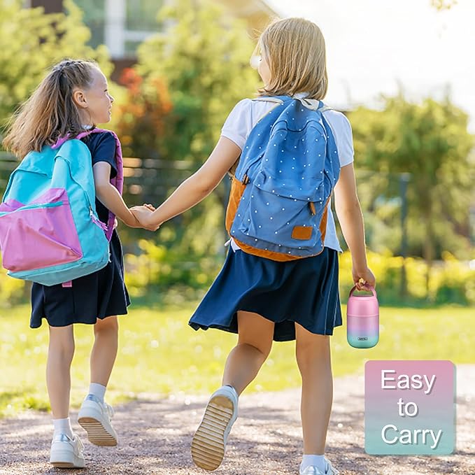 • Our insulated food jar has a unique hidden handle that can reduce the volume of the jar and save more space for you. It fits perfectly in school bags and boxes. The hidden handle could also avoid accidentally opening the lid while carrying school bags.