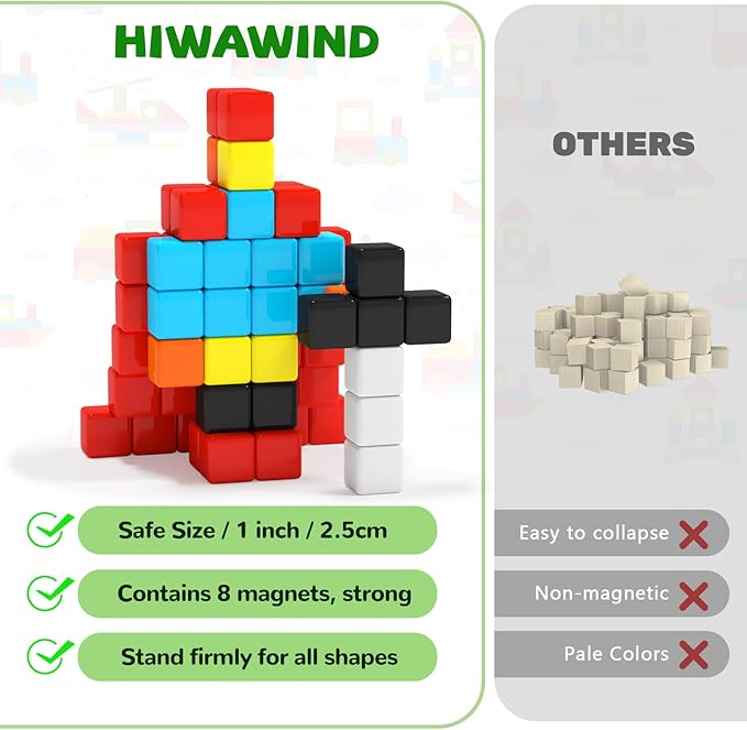 • Open-Ended Creative Building Toys : Unleash your child's creativity and engineering skills with Hiwawind magnet blocks. As kids explore structures of different levels of difficulty, they'll experience pure joy at every step of their building journey and turning toddlers' imagination into reality. Great building blocks for toddlers to foster their problem-solving abilities, spatial awareness and color coordination skills.