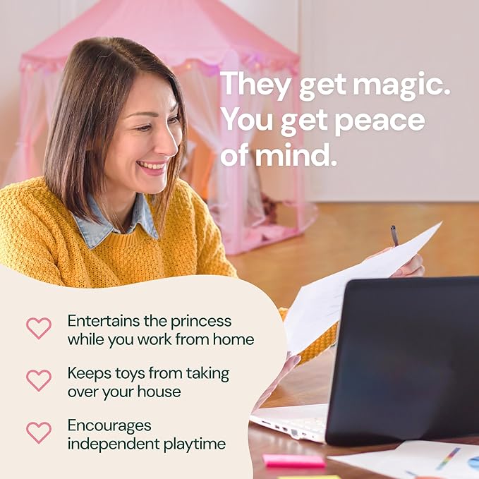 • Durable and Safe Play: Constructed with sturdy poles and kid-friendly connectors, this toddler tent ensures a secure environment for kids. The princess tent for girls age 4-7 is crafted from high-quality materials for lasting durability and enjoyment