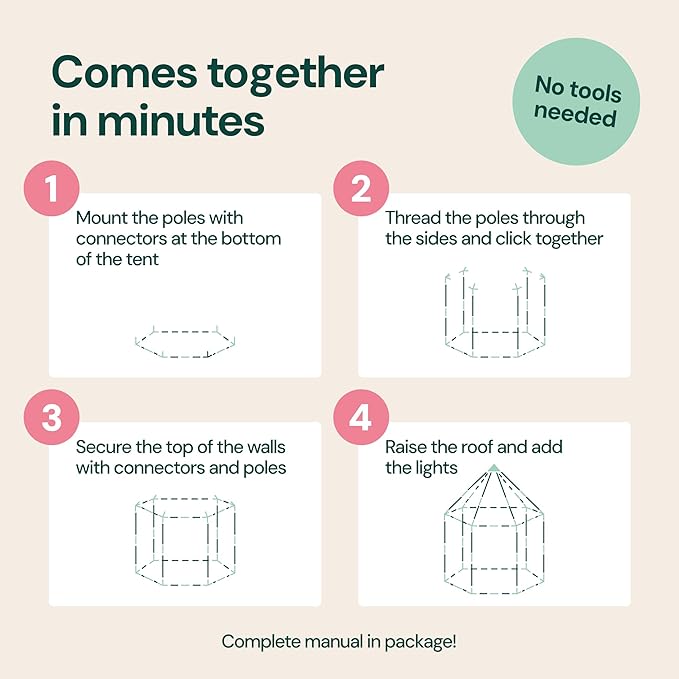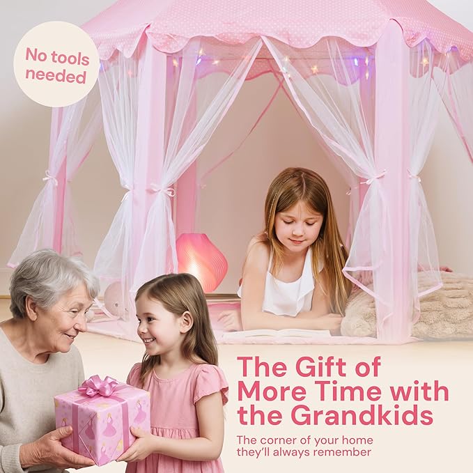 • Magical Exploration: The PLAYVIBE Princess Tent, featuring enchanting LED star lights, creates a vibrant and secure space for kids' exploration. Girls will delight in their own princess tent, nurturing creativity and imagination