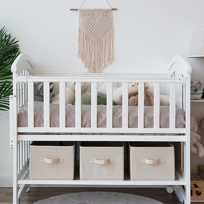 StorageWorks Storage Baskets for Shelves, Foldable Fabric Closet Storage Bins with Handles, Fabric Storage Bins Clothes Organizer, Beige Stripes, 3-Pack, Large