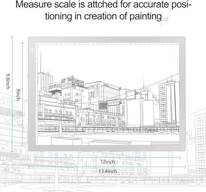 • Ultra Thin and Portable - Thickness 8mm; Work Surface 12 by 9 Inches, fit on A4 size sheet; Weight 0.55kg. Accurate Positioning - Measure scale is attached, benefiting the accurate positioning in drawing creation.