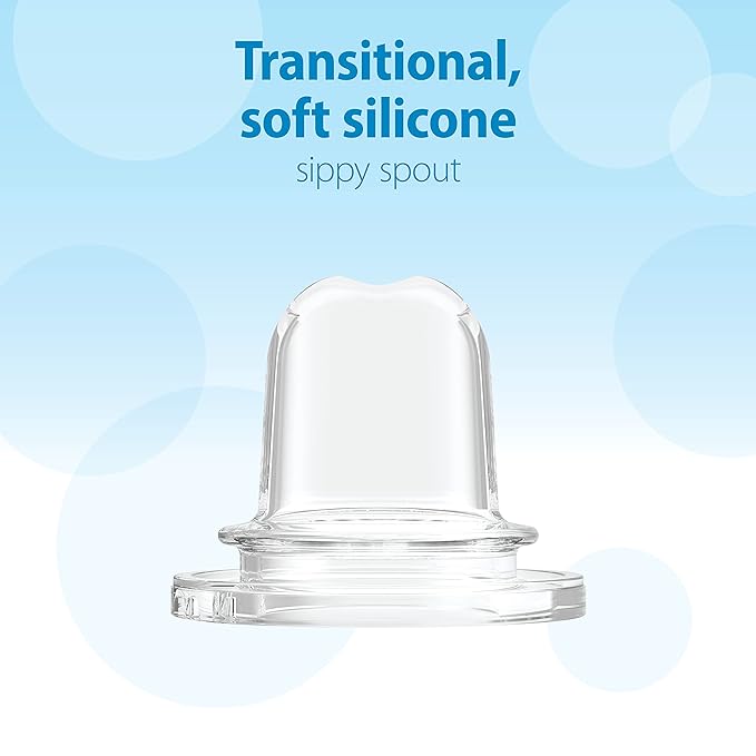 • BABY BOTTLE GIFT SET. As baby gets older, transition to sippy spout and easy grip silicone handles to teach new sippy skills. Store, transport and warm bottles with ease using the included storage/travel cap. Bottle brush included for easy cleaning.