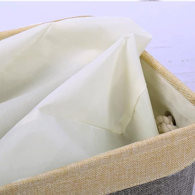 • HANDMADE STICHED & STURDY - TheWarmHome closet organizer outside fabric is made of more linen & thicken Environmental EVA, and used a lining material for the inside, Semi handmade stitched. Sturdy metal rod frame around the top keep the basket shape. Strong seams and rope side handles, make this storage baskets are sturdy and easy to grab. Stand up great on their own even unfilled and ensure a greater product lifespan.