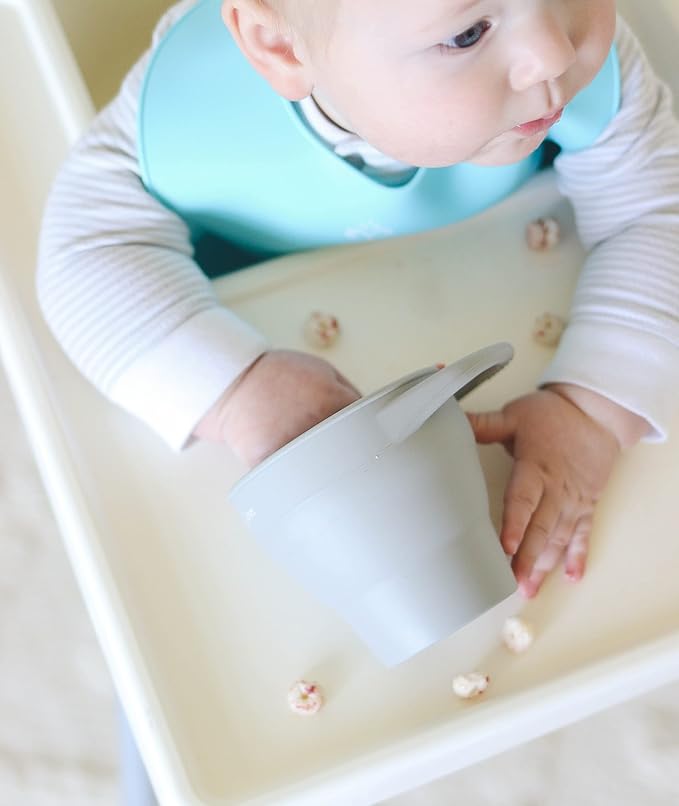 otterlove Collapsable Silicone Snack Container With Attachable Lid | 100% Pure LFGB Platinum Silicone with No Fillers | Snack Cup (2 Pack - Sage & Sand)