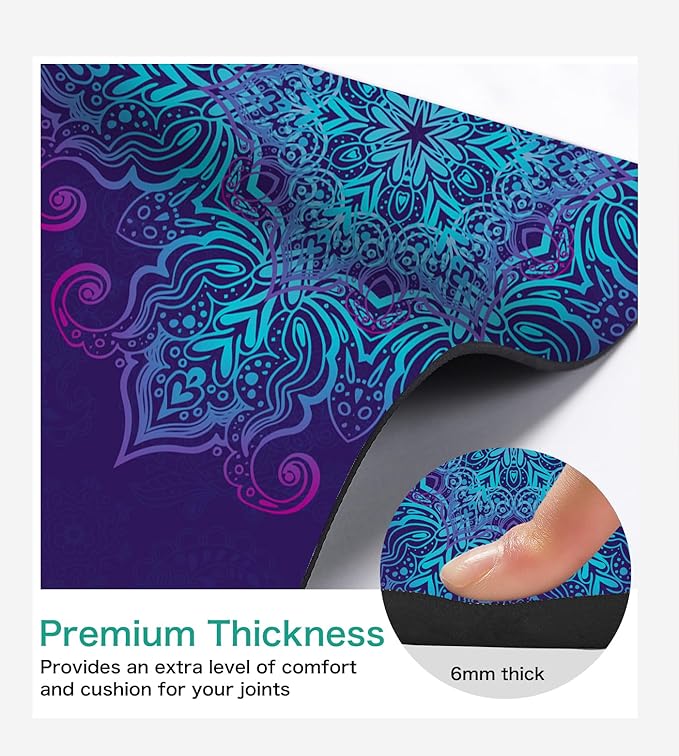 • Standard Size: 72"(183cm) x 24" (61cm); offers adequate space to fit any type of exercise like yoga, pilates, bikram, and fitness exercise. the 6mm extra thick, high density provides excellent cushioning and soft. All our mats come with a free carry bag for easy transport from home to yoga class