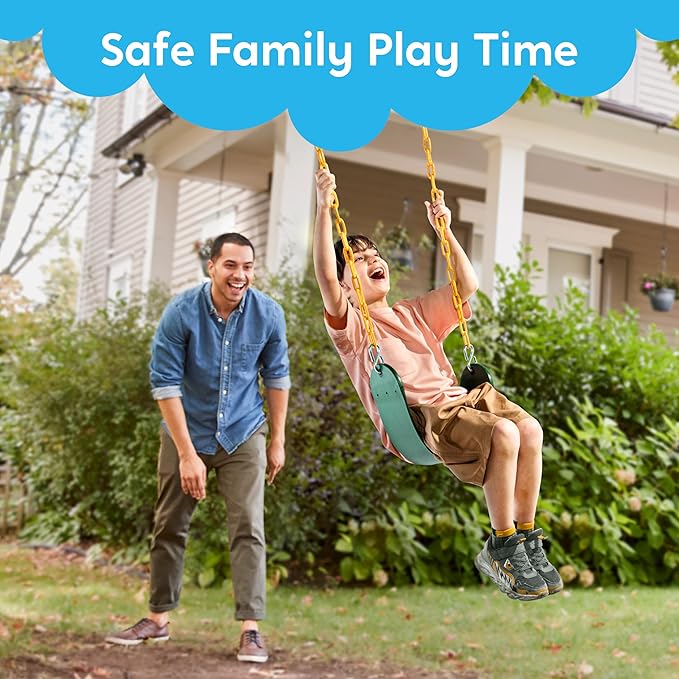 • COMPREHENSIVE SET. Our outdoor playset kit features two lush green extreme duty swing seats and a heavy-duty green ring/trapeze. Each swing set kit supports up to 300 pounds when attached to a heavy duty swing hanger, allowing parents to swing alongside their children.
