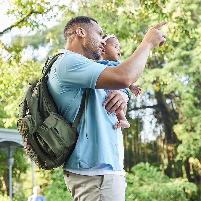 • Convenient & Thoughtful - Cushioned shoulder straps, easy-grab top handle, and convenient stroller clips allow you to use this diaper bag as a travel essentials backpack, a handbag or attach to your stroller.