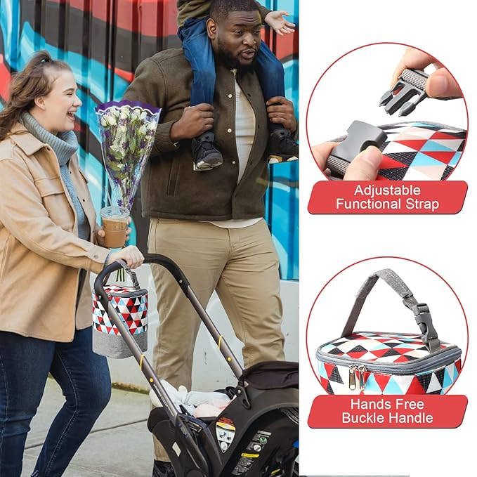 • PORTABLE WITH DETACHABLE BUCKLE: The detachable buckle design of the reusable baby bottle bag ensures you two portable carry ways, handhold or hanging on a stroller, together with soft nylon handle, let you carry the bottle bag effortlessly and comfortably.