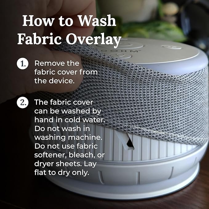 • SOPHISTICATED DESIGN: Dohm Nova’s washable fabric overlay allows sound to seamlessly pass through while also providing a sophisticated style that matches any decor. For care & cleaning, simply remove the fabric overlay and wash by hand in cold water.