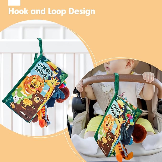 • All for Baby's Safe: The Jungly Tails baby book is made from BPA-free cloth and is soft to touch and chew, easy to use by baby without getting hurt, especially suitable for 0-12 months babies. No small or loose parts to avoid choking hazards and the stitching is strong enough to withstand chewing. Features soft, light and easy to clean so that can be carried anywhere and the colors and graphics do not easily fade and can be maintained with just a quick wash