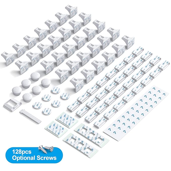 • ✔32locks+6keys: Total 32Locks with 3M tapes, 6Keys with 3M tapes, one installation cradle, one installation ruler, extra 12pcs 3M tapes, optional 128pcs screws, 32pcs position stickers.