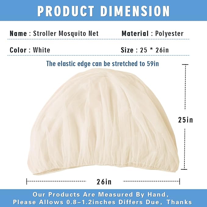 • ✔ Flexible Design Mosquito Net for Stroller: Convenient installation,diameter in 59 inch will fit for most baby’s stroller, carrier, car seat, bassinets & playpens, cradles and Cribs.