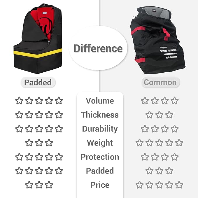 • Superior Material: ProFaster padded carseat travel bag is made of durable Oxford polyester with double-stitched, which is Water-Resistance, tear-resistant, light weight and strong enough for long-term use. Never worry about the safety of your experience carseat.