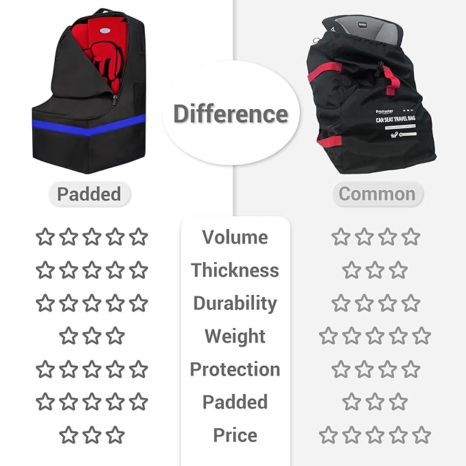 • Superior Material: ProFaster padded carseat travel bag is made of durable Oxford polyester with double-stitched, which is Water-Resistance, tear-resistant, light weight and strong enough for long-term use. Never worry about the safety of your experience carseat.