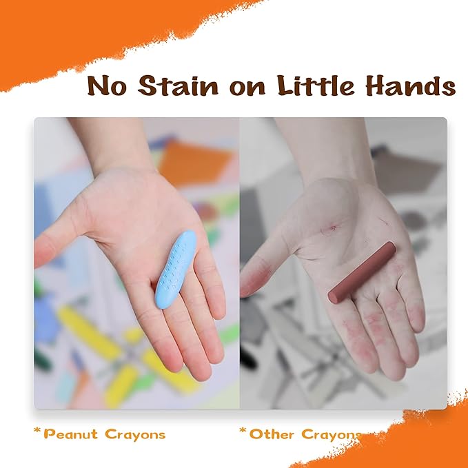 • Easy to Grip: Designed with a cute peanut shape, our toddler crayons are easy to grasp for small hands, allowing them to draw and paint effortlessly